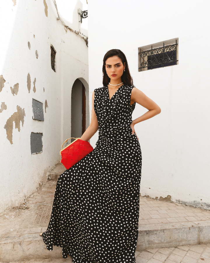 Objet de partage, de générosité, de solidarité, Qoffah  évoque les gestes simples, presque sacrés, de nos traditions. Cette idée d’inclusivité infuse toute la marque. “La mode peut et doit être pour toutes et tous”, souligne Meryem. Ses créations s’inspirent des différentes destinations qui ont marqué son parcours. Ainsi on retrouve le quartier La Madeleine à Paris qui “évoque l’élégance classique, la finesse architecturale,  Dubaï, qui incarne la diversité, l’énergie moderne, l’audace, et Marrakech, avec sa lumière, ses textures, la magie de ses souks et des murs ocres”. Mais au-delà de toutes ces inspirations, c’est le Maroc qui nourrit la vision de la créatrice : ses couleurs, ses matières vivantes, ses artisans au savoir-faire ancestral. Qoffah transforme ces influences en pièces audacieuses, poétiques, profondément contemporaines. L’histoire que Qoffah raconte est celle d’une femme plurielle qui refuse d’être contonnée à un seul rôle. Si on dresse le portrait-robot de la femme qui porte du Qoffah, la créatrice répond sans hésiter, “c’est avant tout une femme qui évolue, qui ose, qui se réinvente.”  Libre, créative, unique, ce sont ces trois mots qui résument l’âme de Qoffah.