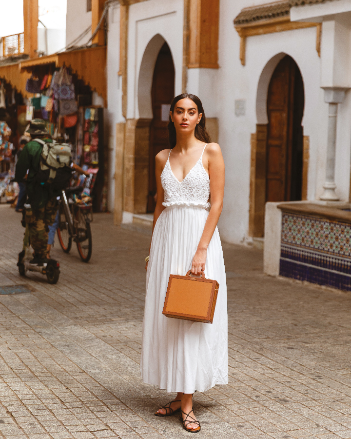 Qoffah s’impose comme un acte de transmission, un hommage à ces histoires que l’on porte au creux de soi. “La marque est née d’un besoin profond de revenir à l’essentiel : créer”, confie Meriem Aanitra. Entre minimalisme et audace maîtrisé, elle impose à travers ses créations une esthétique cérébrale à la faveur d’une féminité complexe et insaisissable, à contre-courant des tendances éphémères.