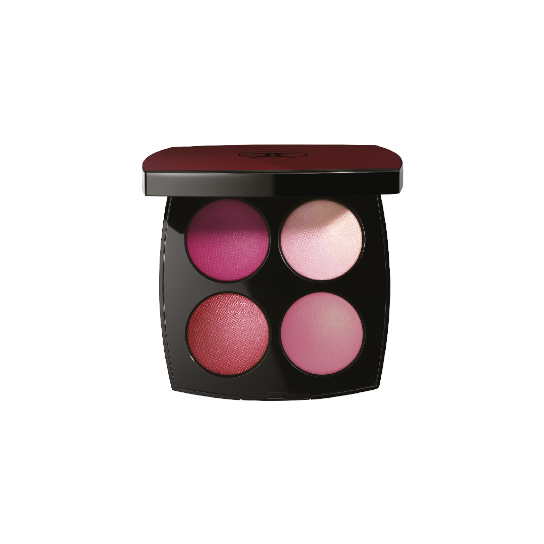 2 Une palette hybride qui comprend des ombres à paupières et des fards à joues, qui révèlent les infinies facettes du Rouge Noir avec un magenta, un rouge sienne aux reflets roses, un highlighter blanc rosé et un rose mauve.
