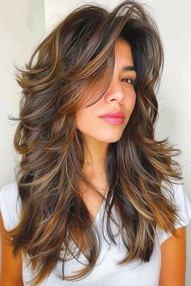 Il s’agit de mèches dégradées qui encadrent le visage pour un effet aérien et élégant qui rappelle les ailes d’un papillon. Techniquement, cette coupe mixe des mèches courtes sur le dessus avec des dégradés sur plusieurs niveaux sur les longueurs. C’est ce qui permet de créer un effet cascade qui peut être accentué par un brushing XXL inspiré des coiffures des supermodels des années 90.
