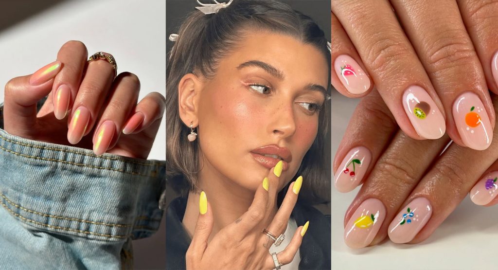 Pastèques, cerises, citrons… Les fruits s’invitent sur les ongles avec des motifs miniatures ludiques. En accent nail ou sur chaque doigt, c’est le détail fun qui donne le smile.