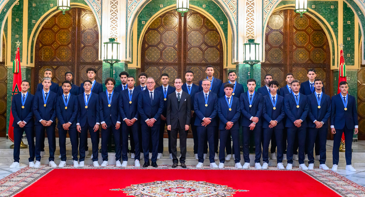 Sur Hautes Instructions de Sa Majesté le Roi Mohammed VI, que Dieu L’assiste, Son Altesse Royale le Prince Héritier Moulay El Hassan a présidé, mercredi au Palais Royal de Rabat, une cérémonie offerte par le Souverain en l’honneur des membres de l’Équipe nationale de football des moins de 20 ans, à la suite de leur triomphe lors de la Coupe du monde 2025 organisée au Chili.