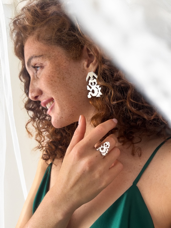 Rhita Créations, portée par Rhita Benjelloun, révèle « L’Île Secrète », une collection de bijoux-totems façonnés à la main. « L’Île Secrète » est un refuge intérieur, quelque part entre l’enfance et le songe, là où la solitude devient douceur et la mélancolie, lumière, comme le décrit joliment la créatrice. De cet espace naissent des créatures étranges et bienveillantes, mi-esprits, mi-souvenirs, dessinées d’un geste instinctif puis sculptées et martelées dans la matière. Chaque figure porte un symbole. La libellule incarne le passage et la transformation. Le singe, libre et joueur, invite à l’humour et au détachement. La méduse enseigne le lâcher-prise, portée par la force douce des courants. Le serpent célèbre la mue et la renaissance, gardien des cycles et de la guérison. L’oiseau relie la terre au ciel, symbole de liberté et de vision. Le totem mi-lune, mi-soleil unit les contraires et veille sur l’équilibre intérieur. La grenouille annonce le renouveau, la sirène écoute les profondeurs, le chat protège les seuils invisibles, et le renard choisit chaque détour avec intelligence sensible. « Chaque bijou de la collection est une trace de ce monde-là, appuie Rhita Benjelloun. Un talisman pour ne pas oublier son imaginaire, pour se rappeler que la beauté peut naître du silence, de l’instinct et du renouveau. »