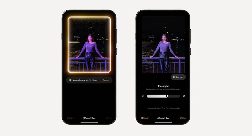 En outre, ColorOS 16 enrichit sa gamme d’outils de retouche photo avec la fonctionnalité AI Portrait Glow. Cette technologie améliore les portraits pris en conditions de faible luminosité en ajustant automatiquement les tons de peau et l’éclairage, offrant un rendu équilibré et naturel en un seul geste.