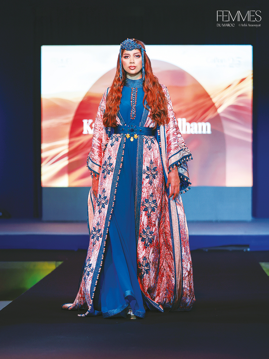 Ses créations sont pensées pour une femme forte, affirmée, et profondément féminine. Fière de son parcours, Kaoutar a lancé sa propre marque, KB’s Touch. “Chaque pièce reflète ma sensibilité, ma vision de l’élégance, et surtout, mon admiration pour la femme marocaine”, confie-t-elle. Participer au défilé des jeunes talents fut pour elle un rêve nourri pendant une année entière. “J’ai pris le temps de concevoir une pièce qui incarne pleinement mon identité de créatrice marocaine : une takchita royale inspirée de la ville de Dakhla et de l’héritage saharien”, raconte-t-elle. “Ce défilé n’a pas été seulement une vitrine pour mes créations, mais aussi un moment d’apprentissage, de partage et de rencontres”, se réjouit Kaoutar.