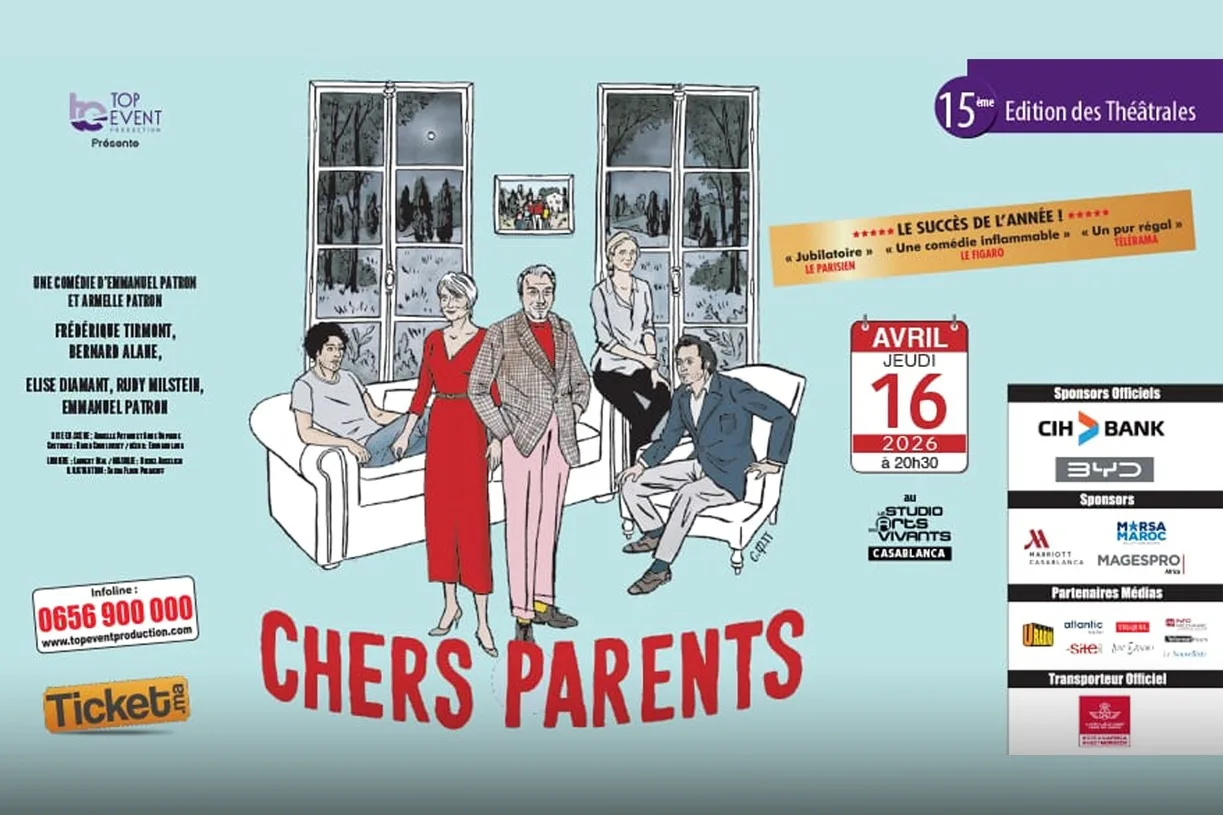 Signée Emmanuel Patron et Armelle Patron, « Chers Parents » s’est imposée comme un succès majeur du théâtre contemporain en France. Avec plus de 900 représentations et près de 450 000 spectateurs, elle a su conquérir un large public et la critique. Elle est prévue le 16 avril au Studio des Arts Vivants dans le cadre de la 15ᵉ édition des Théâtrales. L’histoire s’ouvre sur un appel en apparence banal : Pierre, Jules et Louise, trois frères et sœur très proches de leurs parents, sont convoqués en urgence dans la maison familiale. Ils arrivent inquiets, persuadés que quelque chose de grave s’est produit. Mais la réalité qu’on leur annonce est tout autre… et vient, en quelques instants, fissurer l’image d’une famille unie. La pièce explore les liens familiaux, les rivalités fraternelles, les non-dits anciens et ce que l’argent peut brutalement révéler dans les relations.