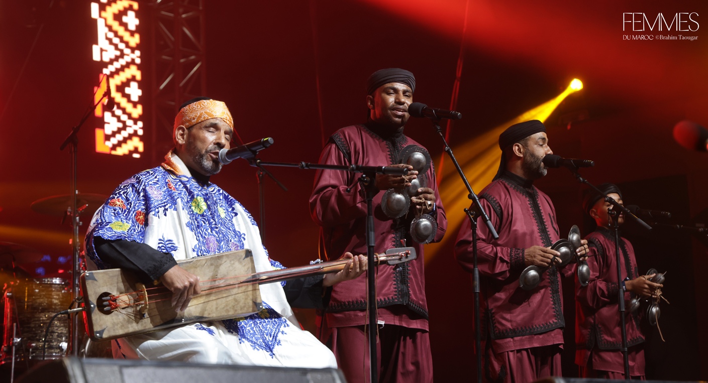 Dès l’ouverture, Maâlem Hamid El Kasri avait donné le ton avec une performance puissante aux côtés de la troupe sénégalaise Bakalama. L’esprit de la tagnawite, dans ce qu’il a de plus authentique et généreux, était déjà là. Tout au long du festival, les fusions musicales se sont multipliées : Dhafer Youssef et Morad ElMarjan pour une rencontre mystique entre oud et guembri, CKay pour un dialogue inédit entre afrobeat et musique gnaoua, ou encore la présence de talents féminins comme Asmaa Hamzaoui, Bnat Timbouktou ou la chanteuse malienne Rokia Koné.