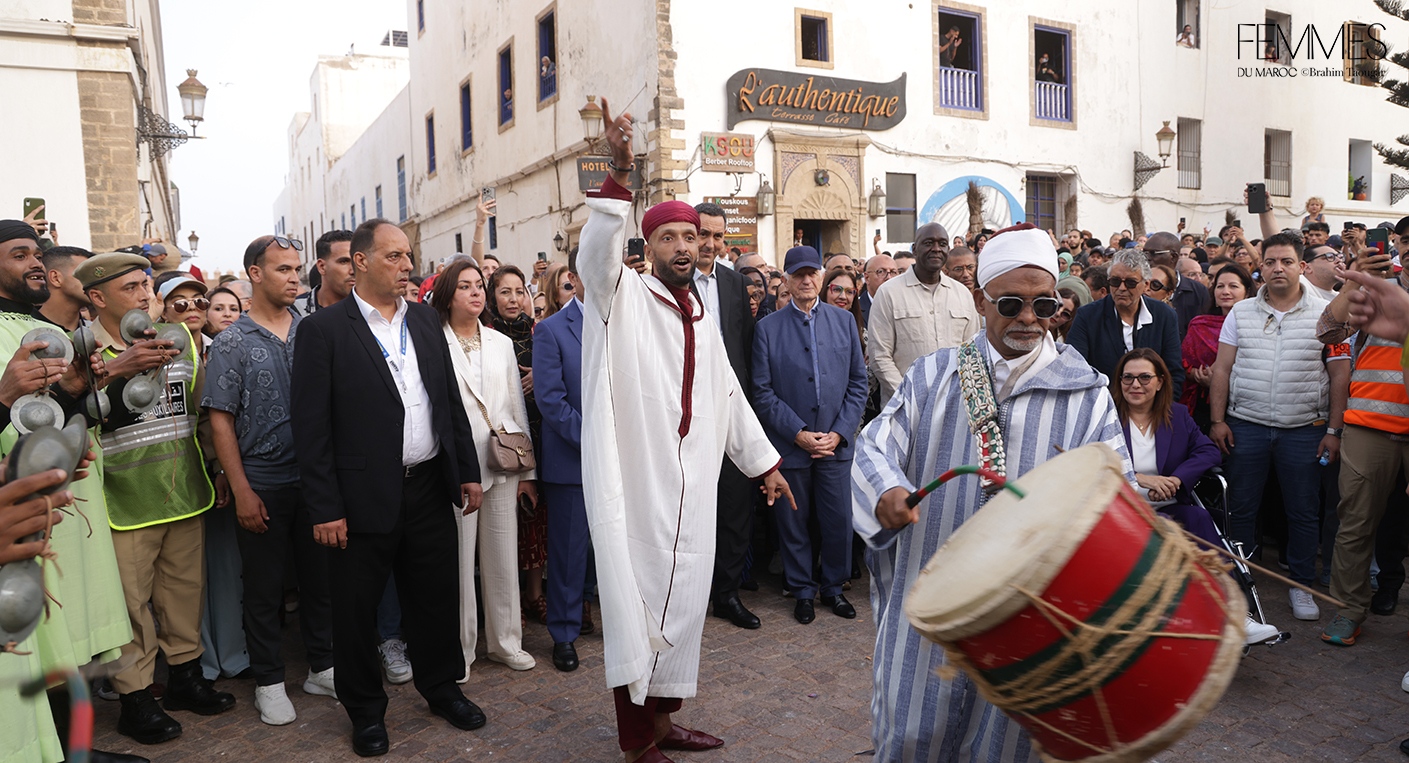 Jeudi soir, Essaouira s’est animée au son des tambours et du guembri. Comme chaque année, la parade inaugurale a ouvert le festival dans les ruelles de la médina, portée par l’énergie communicative des Maâlems gnaoua et des troupes folkloriques. Un moment fort, attendu par les habitants comme par les festivaliers, marqué par la présence d’André Azoulay, conseiller de SM le Roi, de la productrice Neila Tazi, et de plusieurs figures du monde culturel.