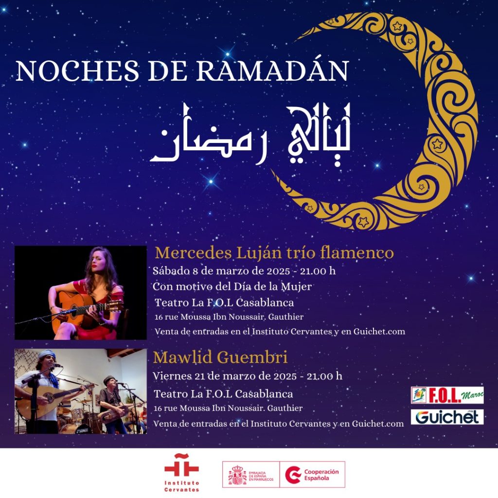 Dans le cadre des “Nuits du Ramadan”, l’Instituto Cervantes de Casablanca organise, en collaboration avec l’Ambassade d’Espagne, deux concerts de musique andalouse, au théâtre de La F.O.L à Gauthier.