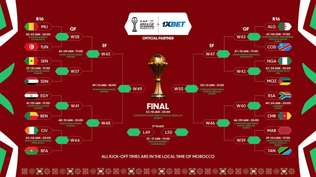 Pour la première fois de son histoire, la Coupe d’Afrique des Nations innove jusque dans son format géographique. Les huitièmes de finale se joueront dans huit stades différents, répartis à travers les différentes régions du Maroc. Un choix audacieux qui consacre la CAN comme une fête populaire décentralisée, rapprochant le football des territoires et offrant à chaque ville l’intensité des matchs à élimination directe. Une organisation ambitieuse, reflet d’une compétition entrée dans une nouvelle ère.