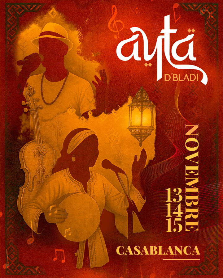 AYTA D’BLADI donne naissance à un projet artistique fort et fédérateur, fondé sur une collaboration inédite entre les icônes de l’Aïta populaire — gardiennes d’un héritage oral centenaire — et les talents émergents de la jeune scène marocaine, porteurs de nouvelles écritures musicales. À la croisée des styles et des générations, ce dialogue créatif tisse une nouvelle grammaire sonore, à la fois ancrée et affranchie, sensible et audacieuse. Plus qu’un festival, AYTA D’BLADI est une œuvre collective en mouvement, un terrain d’expérimentation artistique où la tradition se réinvente dans un souffle contemporain, porté par l’envie de faire vibrer l’aïta au rythme du monde d’aujourd’hui.