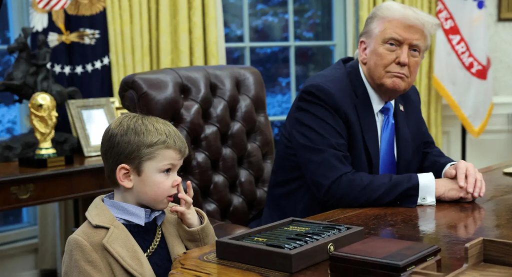 Lil X, le fils d’Elon Musk et de la chanteuse Grimes, a fait une apparition mémorable aux côtés de Donald Trump, le mardi 11 février. Son père, récemment désigné pour diriger le ministère de l’Efficacité gouvernementale, était présent dans le Bureau ovale tandis que le président américain signait un décret ordonnant aux agences fédérales de collaborer avec son nouveau ministère. Malgré le cadre très formel de la situation, le petit garçon de 4 ans a improvisé une prestation solo.