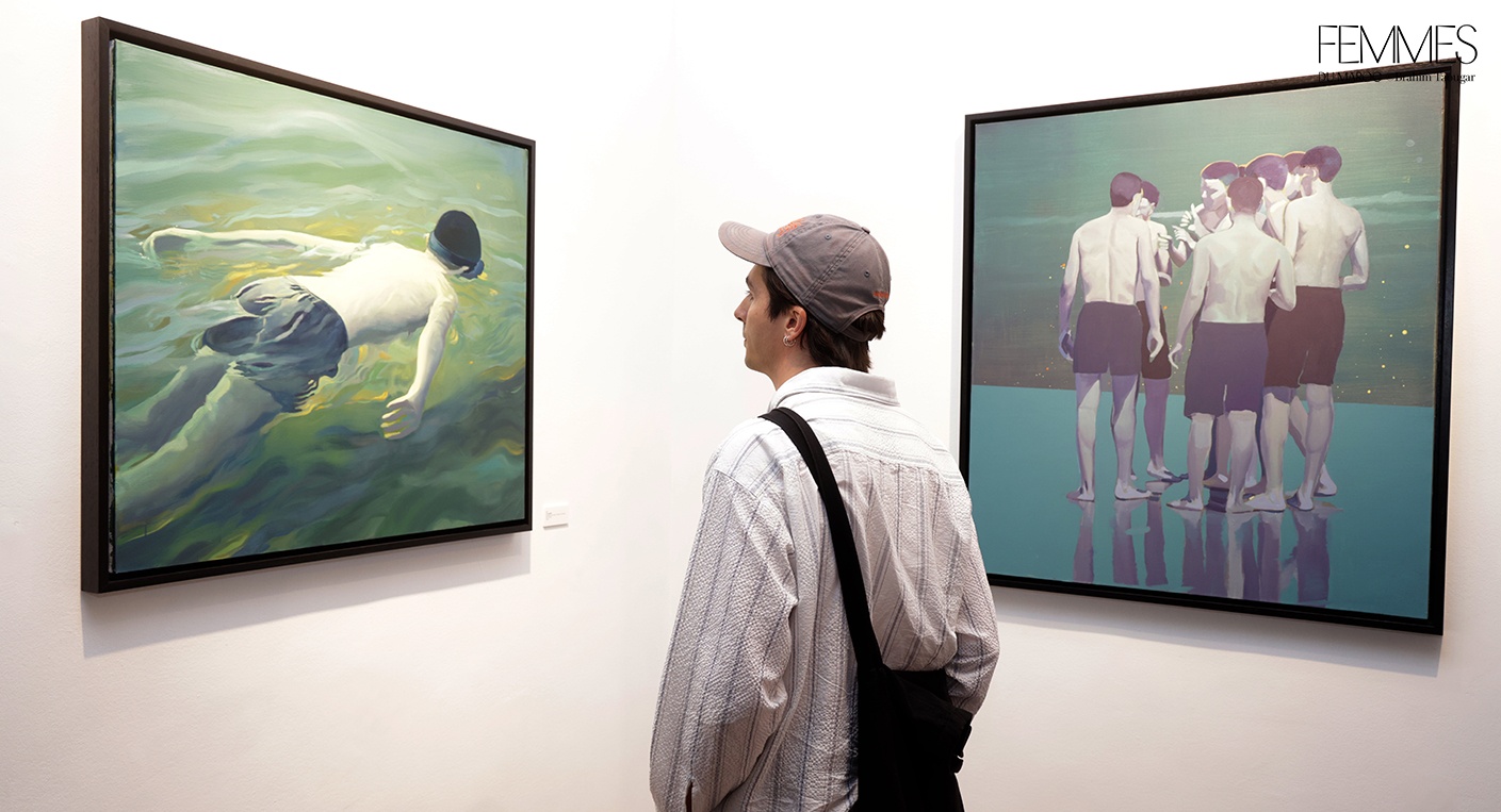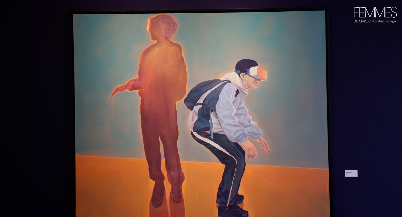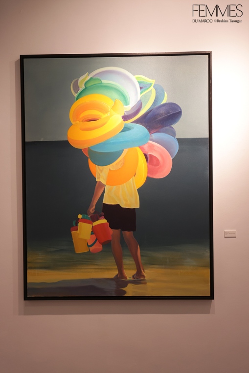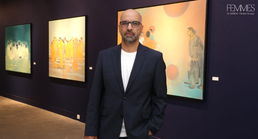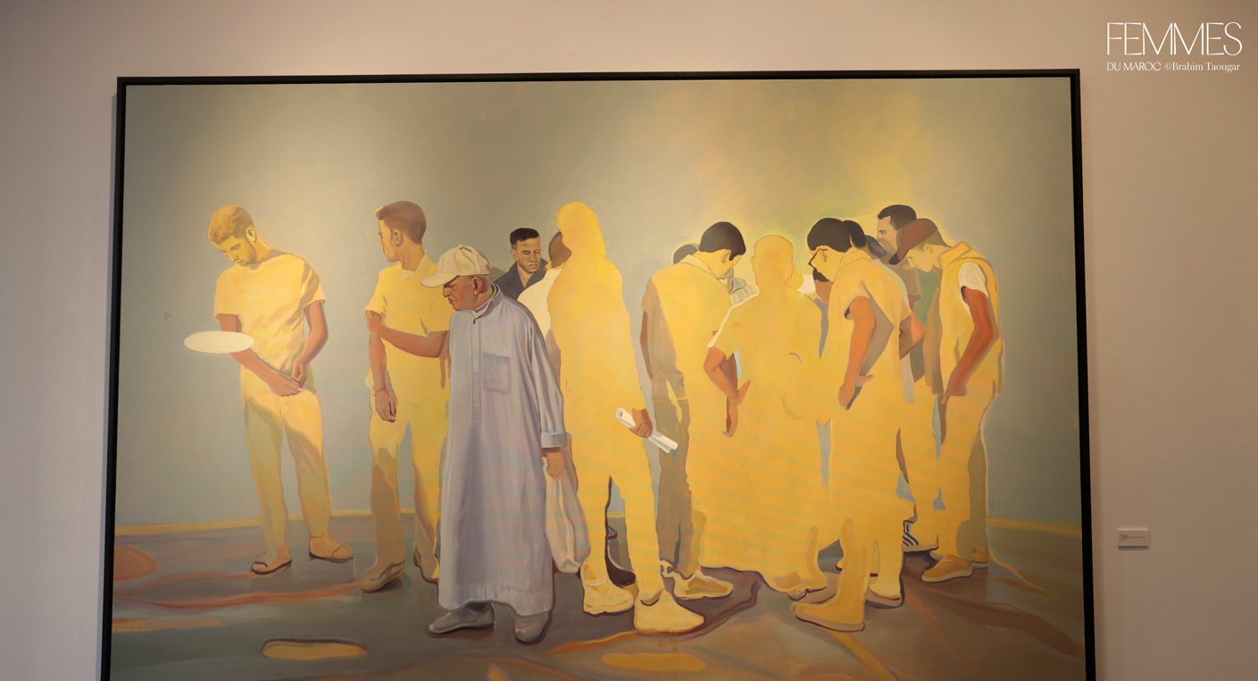 Et de poursuivre : « L’artiste révèle cette portée existentielle en déplaçant la foule dans le non-lieu de surfaces colorées amorphes, la soustrayant à tout contexte. Il l’immerge dans une chromatique qui instaure une impression de silence – un silence irréel, subtilement inquiétant, car il contredit notre expérience habituelle de telles foules. De cet état suspendu, fragmentaire, s’ouvre un espace d’allusions et de réflexions qui nous inclut en tant que spectateurs : nous prolongeons, à notre insu, ce qui n’est qu’esquissé. Car c’est le fragment, dans sa faille et son incomplétude, qui suscite en nous une résonance intime. »À travers Résonances, Nabil El Makhloufi poursuit une œuvre où la figuration, nourrie de son double ancrage entre le Maroc et l’Allemagne, s’ouvre à une méditation sur l’individu, le collectif, l’exil et les espaces de passage. Né à Fès et formé à l’Académie des Arts Visuels de Leipzig, l’artiste transpose dans ses toiles l’expérience de cet entre-deux culturel et géographique. Dominées par la figuration, et oscillant entre réalisme et imaginaire, les peintures de Nabil El Makhloufi, empreintes de silence, explorent les thèmes d’appartenance, de migration et de quête existentielle.