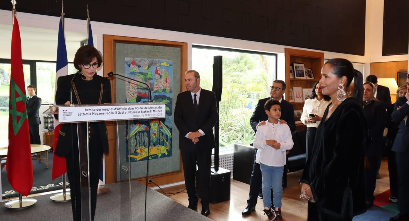 C’est un titre honorifique qui vient récompenser non seulement son talent exceptionnel, mais aussi son engagement sans faille dans la préservation et la modernisation du patrimoine de la broderie et du textile marocain. Fadila El Gadi vient d’être élevée au rang d’officière des Arts et des Lettres par la République française par Rachida Dati, en visite au Maroc, lors d’une cérémonie organisée à la résidence de France à Rabat en présence de nombreuses personnalités comme André Azoulay, Conseiller de Sa Majesté le Roi Mohammed VI, ainsi que des diplomates et figures clés du secteur.