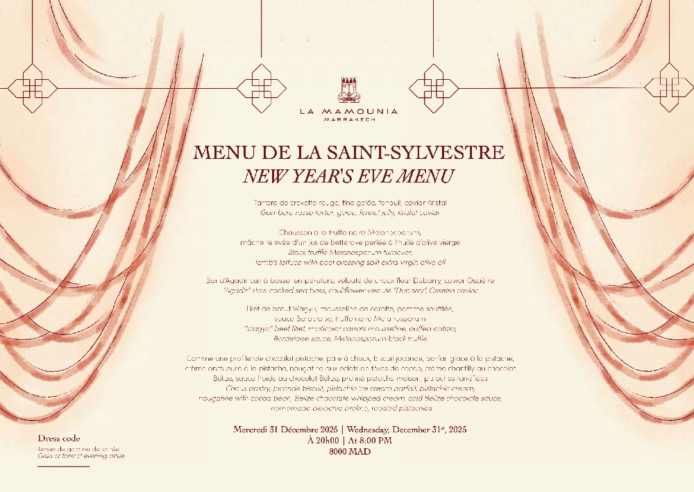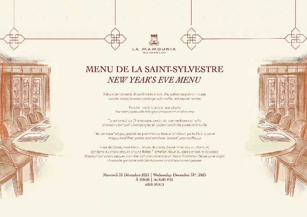 Célébrez la magie de Noël au cœur de l’emblématique Mamounia, où traditions festives et raffinement se rencontrent. Le palace marrakchi propose deux jours d’expériences uniques, entièrement dédiés au partage et à la gastronomie. Entre menus d’exception, douceurs de saison et atmosphère féerique au milieu des jardins centenaires, La Mamounia promet un Noël délicatement orchestré, où chaque moment devient un souvenir précieux.