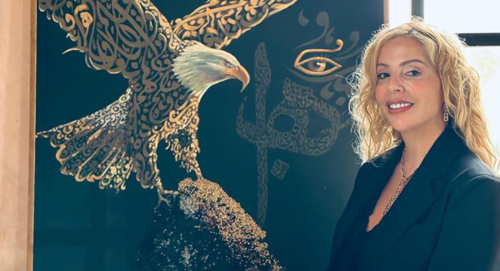 Un autre élément marquant de l’exposition est la présence du caractère arabe, porteur de symboles spirituels et historiques. zarkani développe ici une approche qu’elle qualifie de « réalisme de la lettre arabe », articulée autour des tons noir et or, symboles de puissance et de singularité.