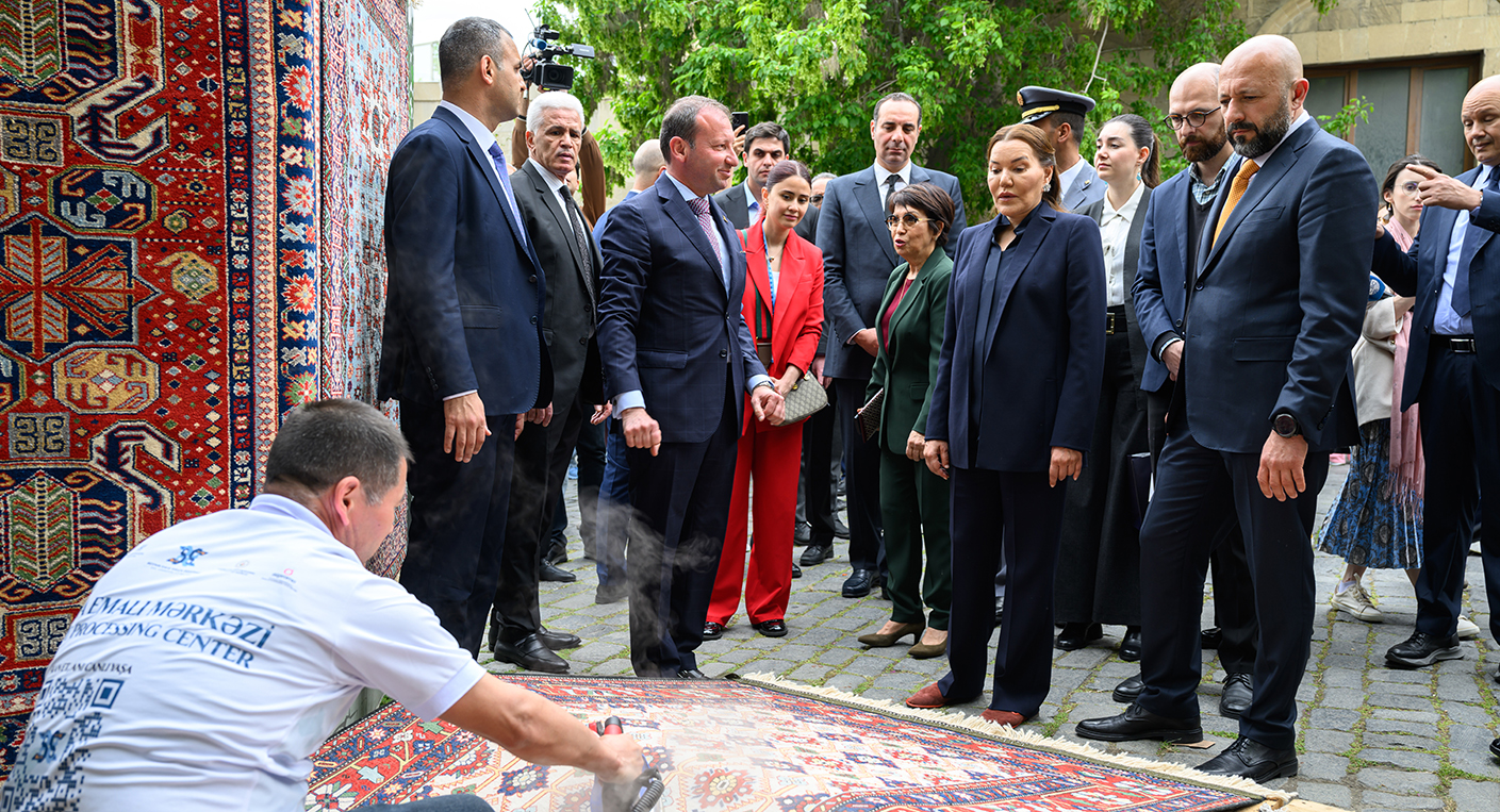 Par la même occasion, Son Altesse Royale a assisté aux différentes étapes du tissage et du traitement des tapis d’Azerbaïdjan, avant d’assister également aux tissages de tapis représentant les diverses régions de ce pays d’Asie occidentale, qui se distinguent par leur grande variété, leur mode de tissage et leur composition, les figures géométriques utilisées, la subtile harmonie dans le jeu des couleurs, la richesse de leur ornementation et le caractère singulier et la finesse des détails de chaque exemplaire.