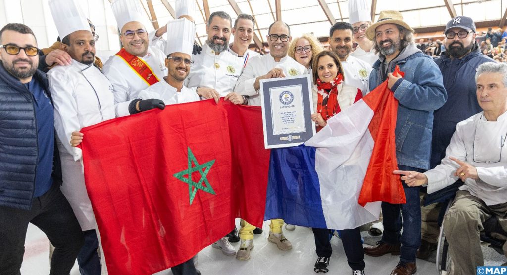 Pour réussir ce défi, le chef pâtissier marocain a travaillé pendant 24 heures, entouré de chefs français de renom, comme Nicolas Bernardé, et d’une équipe d’artisans venus du Maroc. Le fraisier, qui pèse 1,2 tonne, a nécessité 4.000 œufs, 150 kg de sucre, 560 kg de crème et 350 kg de fraises.
