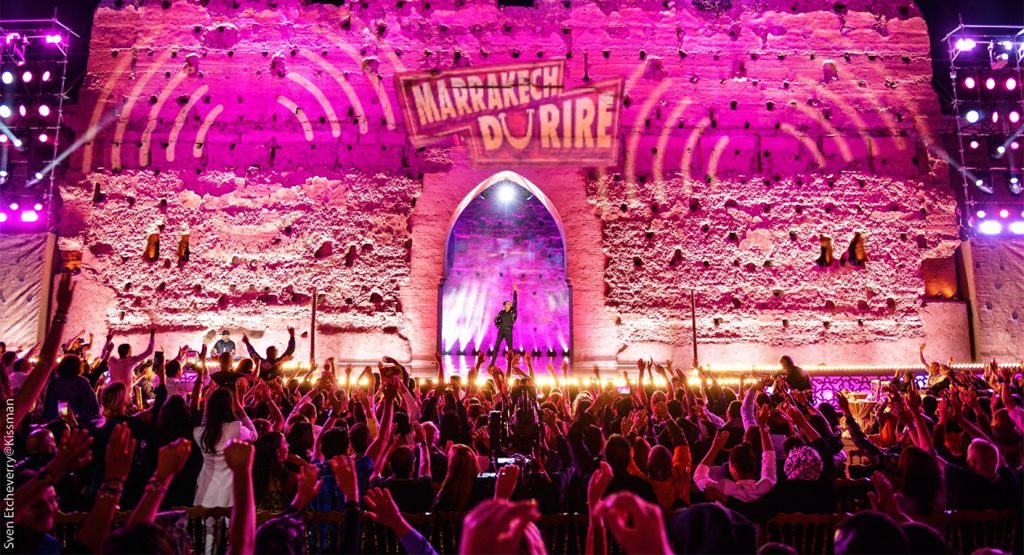 Créé en 2011 par Jamel Debbouze, le Marrakech du Rire est devenu un rendez-vous incontournable pour les amateurs de comédie dans la ville ocre. Le festival se déroulait généralement en juin et rassemblait des humoristes de divers horizons, proposant une variété de spectacles allant du stand-up aux sketches en passant par des performances théâtrales. Il réunissait également de nombreuses personnalités du monde du cinéma, de l’audiovisuel, de la musique et du sport et se déroulait dans des lieux emblématiques de la ville, tels que le Palais El Badi et le Théâtre Royal, offrant un cadre exceptionnel pour les représentations.