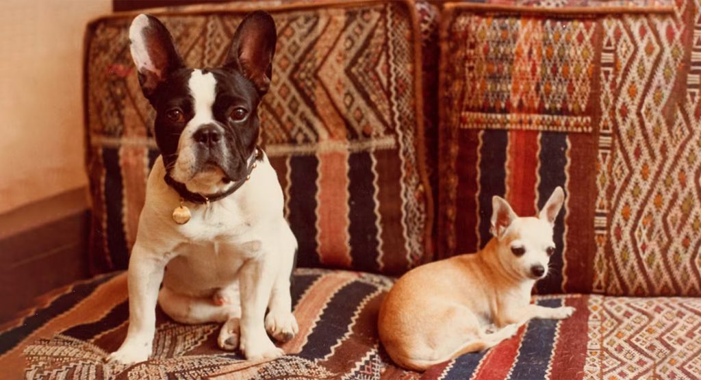 Parmi ses chiens célèbres, le légendaire Moujik et ses trois successeurs portant le même nom occupent une place centrale. Mais l’exposition met aussi en lumière des « grandes oubliées » : les chihuahuas Hazel, petites mais incontournables figures iconographiques dans l’univers du créateur. Ces adorables compagnons sont immortalisés dans des clichés précieux, aux côtés des proches du couturier tels que François-Marie Banier ou Talitha Getty, photographiés par Martine Franck ou Alice Springs.