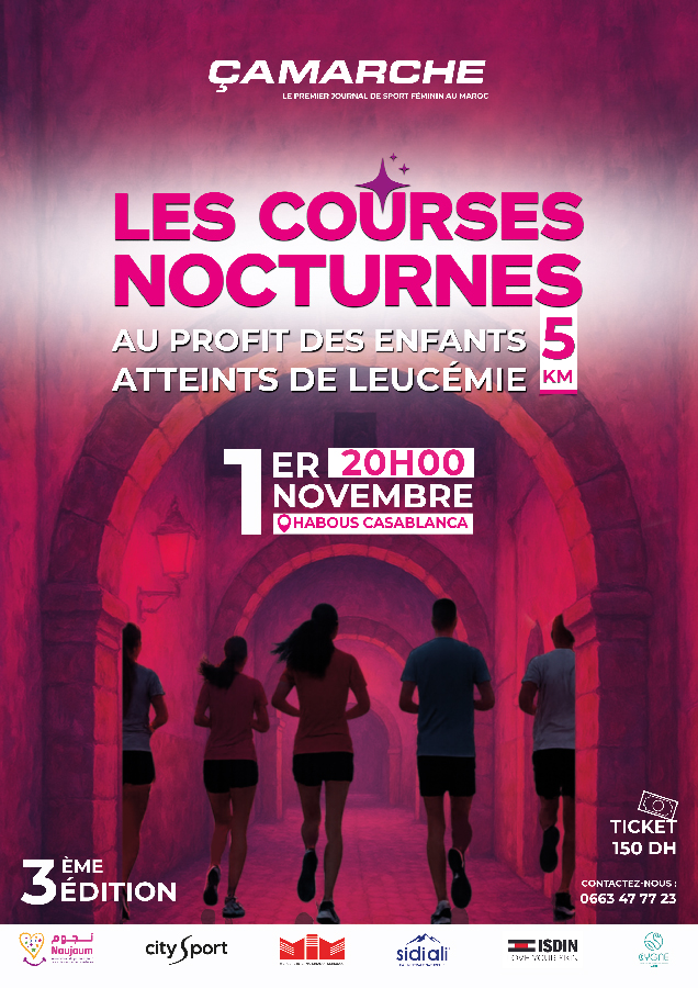 Avec leur concept mêlant sport urbain, engagement social et découverte du patrimoine, les COURSES NOCTURNES aspirent à devenir un rendez-vous majeur du calendrier sportif national. Un moment où les villes du Royaume vibrent au rythme des pas, des sourires et des cœurs solidaires.