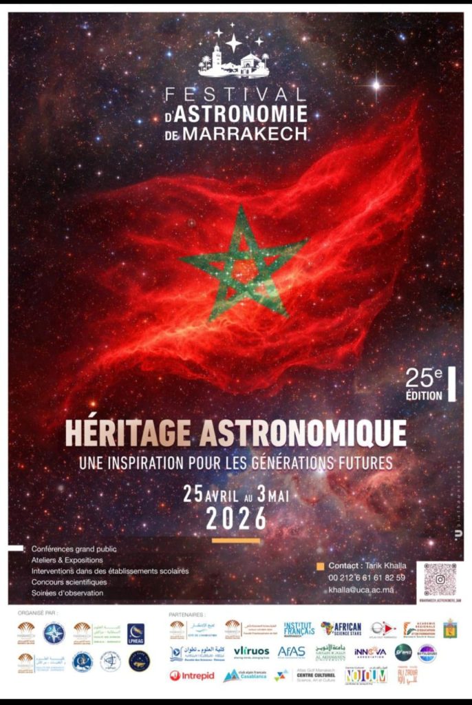 Organisée par l’Association d’Astronomie Amateur de Marrakech (3AM), en collaboration avec l’Université Cadi Ayyad (UCA), le centre culturel Atlas Golf Marrakech et l’Institut Français de Marrakech, cette 25e édition, qui se poursuit jusqu’au 2 mai prochain, se tient sous le thème “Astronomie au Maroc : héritage scientifique et inspiration pour les générations futures”.
