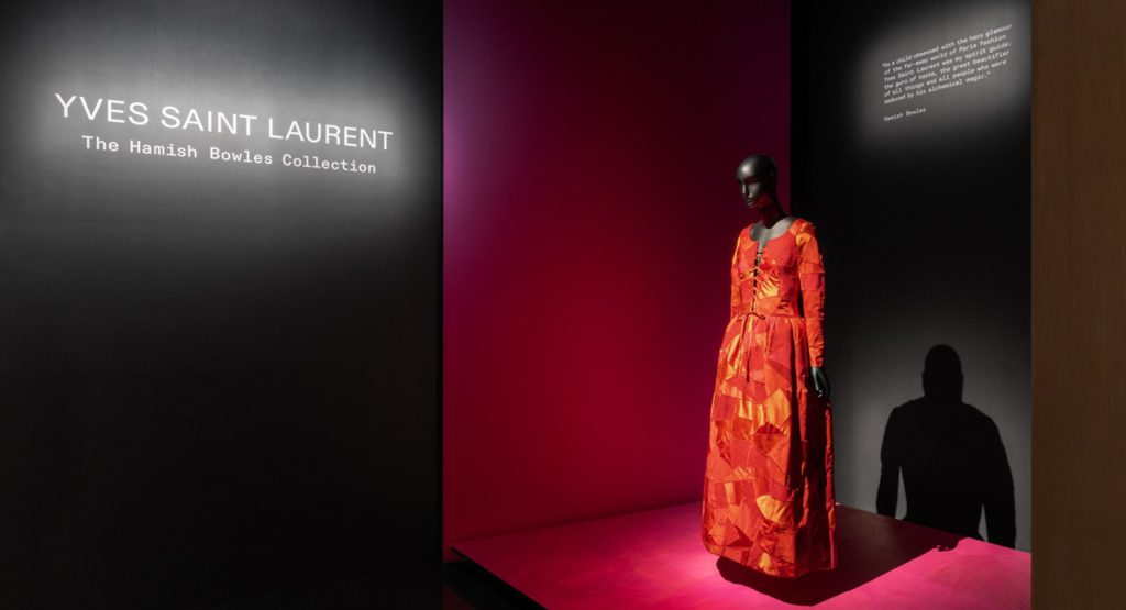 L’exposition met en lumière 55 pièces issues de la collection personnelle d’Hamish Bowles, journaliste, historien de la mode et grand admirateur d’Yves Saint Laurent.