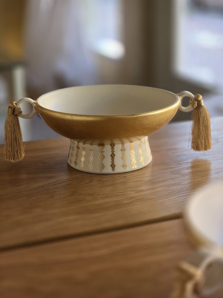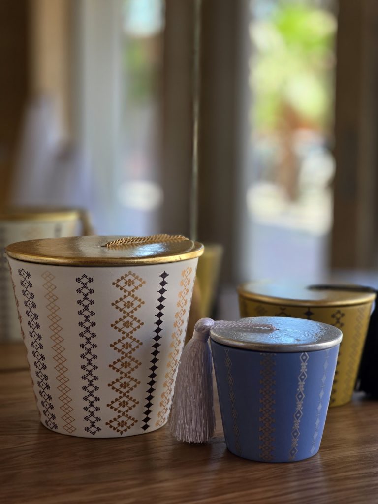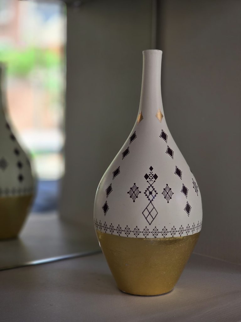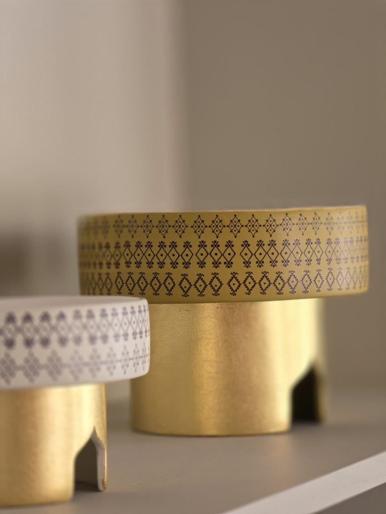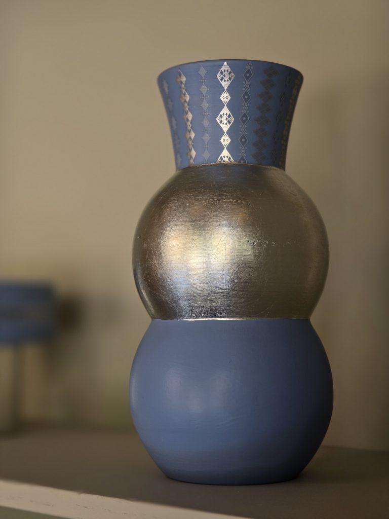 Myriam Mourabit signe une nouvelle collection d’objets-bijoux qui fait dialoguer l’artisanat marocain et la modernité. Cette fois-ci, elle est pour la boutique SET à 8, un espace raffiné à Marrakech. Inspirée par les tapis amazighs de son enfance, la designer réinvente ainsi losanges et triangles sur des vases et objets décoratifs aux lignes généreuses, douces et sensuelles. Travaillées à la main et sublimées par la sérigraphie, ces pièces oscillent entre éclat doré et argenté, clin d’œil aux bijoux traditionnels. Pompons de soie, teintes harmonieuses et coffrets-écrins parachèvent cette collection lumineuse où chaque détail compte. Myriam Mourabit y exprime une nouvelle fois sa vision du design : féminine, intemporelle et résolument artistique !