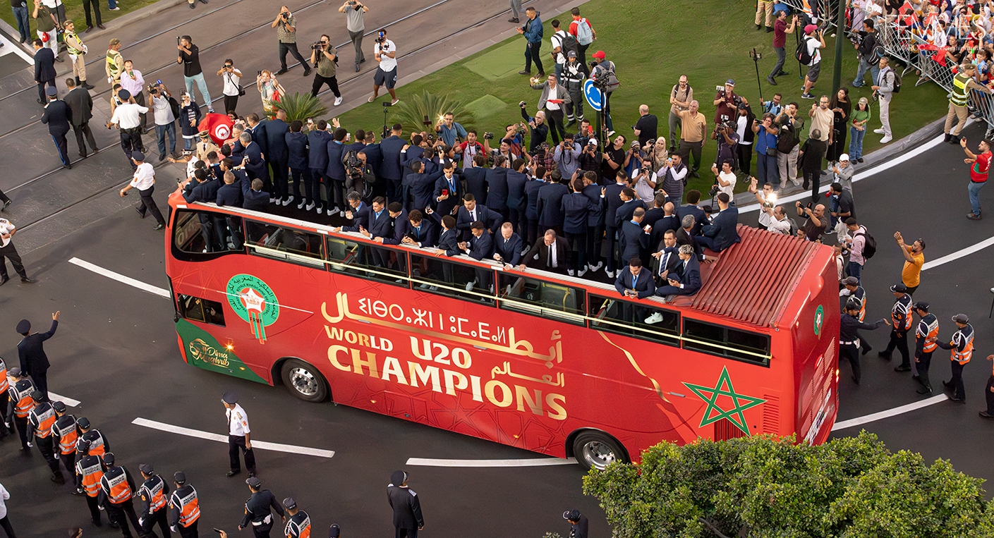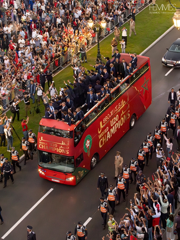 À bord d’un bus à impériale décoré aux couleurs nationales, les jeunes joueurs, visiblement émus, ont salué la foule qui scandait des chants patriotiques et agitait des drapeaux dans une euphorie générale.Les Rbatis, jeunes et moins jeunes, rejoints par de nombreux supporters venus d’autres villes du Royaume, étaient présents pour immortaliser ce moment exceptionnel. Paillettes, chants, youyous et applaudissements ont accompagné le cortège.
