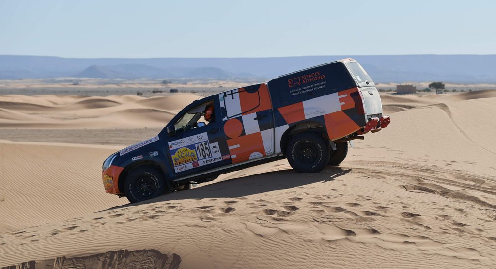 L’étape 2 marque un moment fort du rallye : les mythiques dunes de l’erg Chebbi, à Merzouga. Ici, chaque équipage choisit son niveau de difficulté parmi les parcours X (le plus ardu), Y (intermédiaire) ou Z (le plus accessible). Les crossovers et les véhicules électriques suivent quant à eux un tracé hors dunes, mais pas sans défis. Cette étape est la seule où les Gazelles peuvent s’entraider sur le terrain.