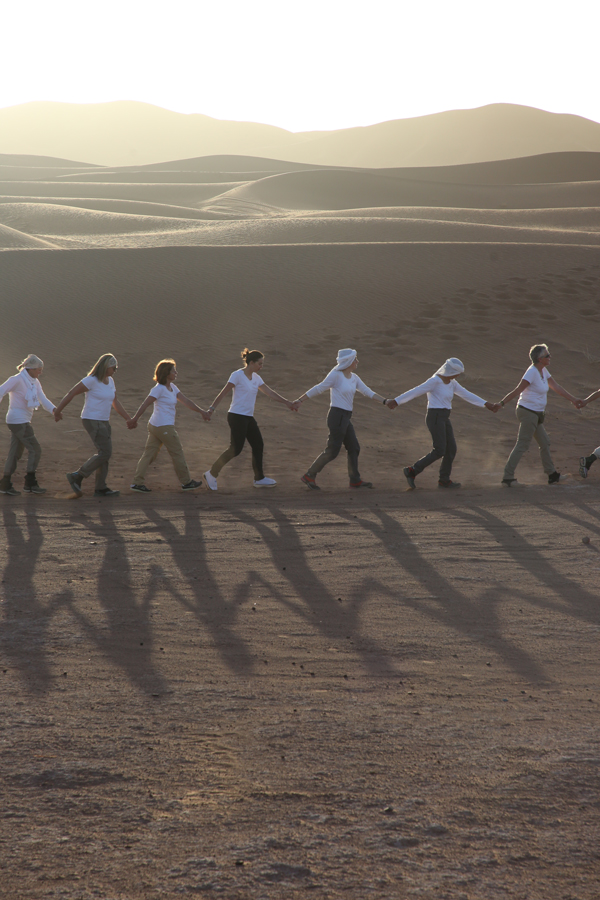 Direction le Sahara, depuis Zagora, porte du désert et point de départ d’un trek légendaire. La méharée suit un itinéraire chargé d’histoire, emprunté par les caravanes subsahariennes. Les participantes découvriront l’immensité des dunes, des ergs et des plateaux désertiques.