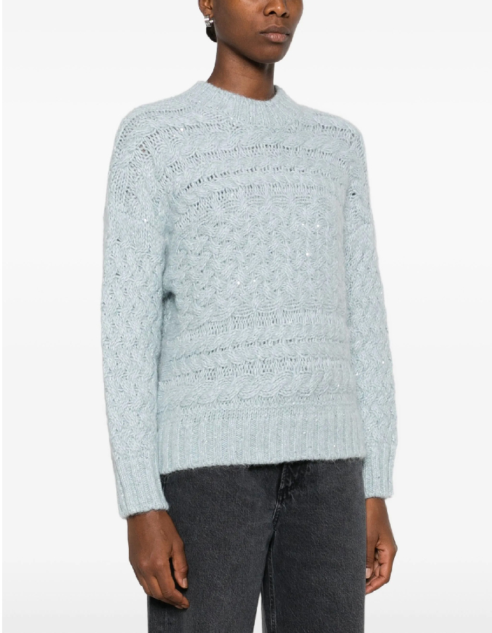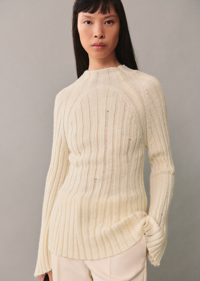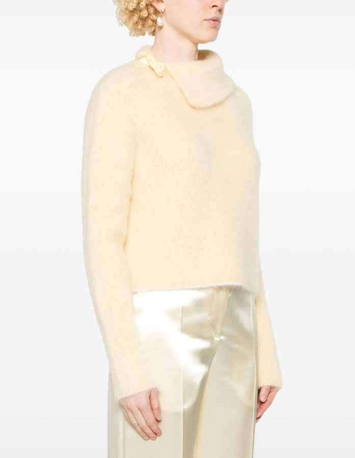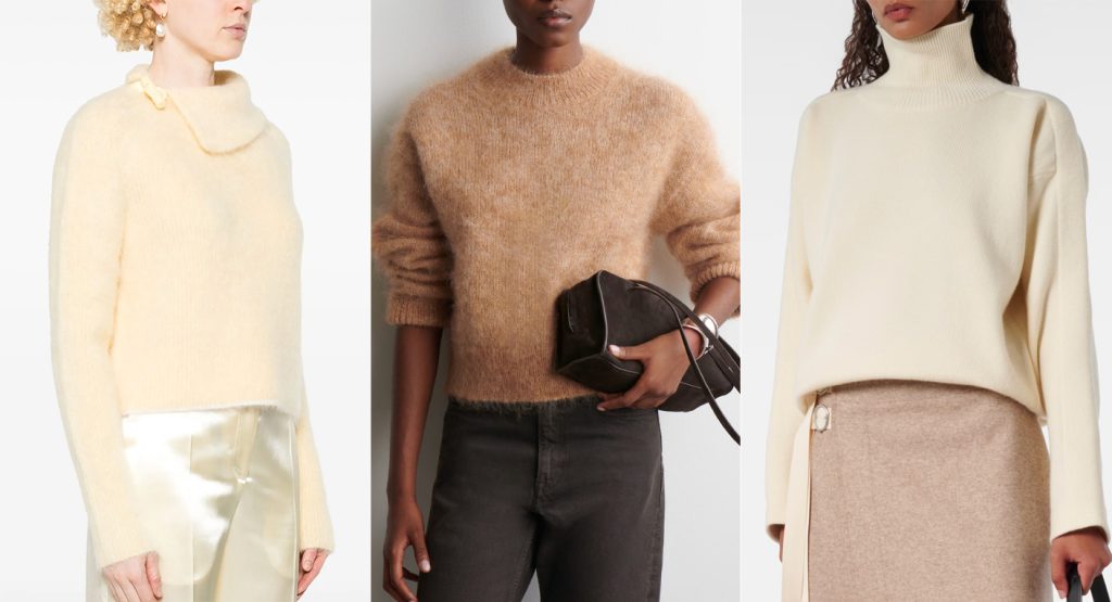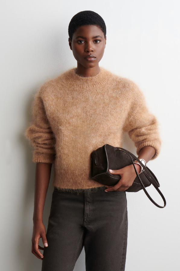 La douceur du mohair revient en force cette saison. On trouve dans les fashion reports que « rien n’est plus réconfortant que la chaleur du mohair près de la peau ». Conseil style : optez pour une version légèrement oversize afin de jouer sur le relief et les contrastes. Une nuance neutre ou un coloris riche feront toute la différence.