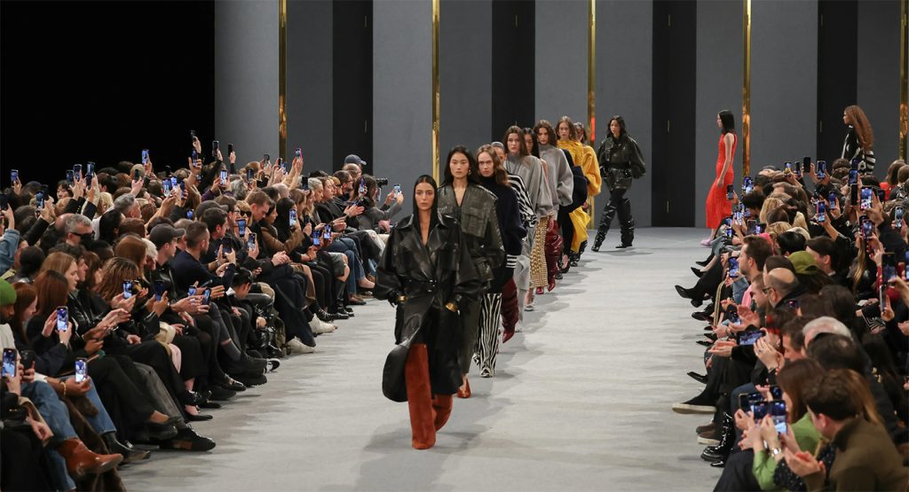 La collection a mis en avant des tricots sculpturaux, des drapés fluides et des motifs zébrés saisissants, offrant une palette monochrome ponctuée de textures variées telles que des plis, des tops froncés et des cuirs gaufrés. Les accessoires ont joué un rôle clé, avec des bracelets massifs, des boucles d’oreilles et des manteaux oversize ajoutant une touche d’énergie animale à l’ensemble. Les chaussures, notamment les escarpins torsadés et les bottes en cuir souple, ont apporté une dimension ludique au défilé.