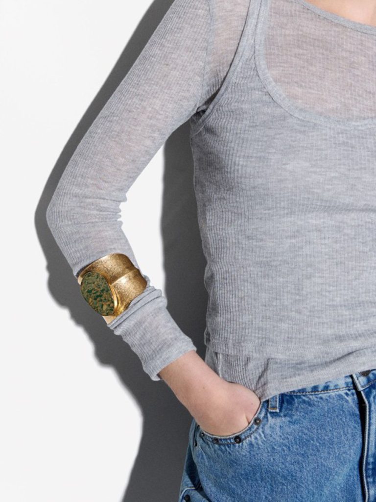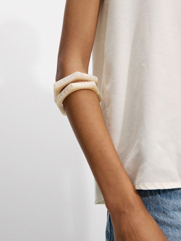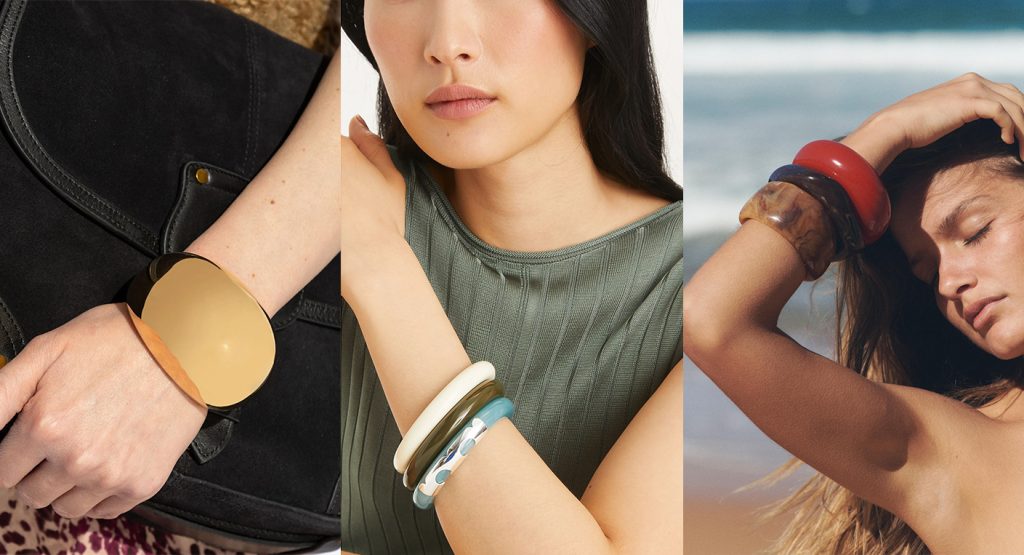 Colorés, sculpturaux et oversize : les bijoux ne se font plus discrets, bien au contraire. Ils s’imposent désormais comme de vraies pièces maitresse de notre garde-robe. Les bracelets en résines appelé aussi “bangle bracelet” font donc leur grand retour portés en accumulation, ils apportent une touche d’originalité à nos tenues. Pour info, cette mode est ultérieure aux années 70 puisque c’est Coco Chanel qui a insufflé la mode de l’accumulation des bijoux. Objectif ? rendre le luxe plus accessible et ouvrir la voie à une créativité sans limites. Aujourd’hui, ce souffle audacieux continue d’inspirer, porté par des matériaux plus légers et flexibles.