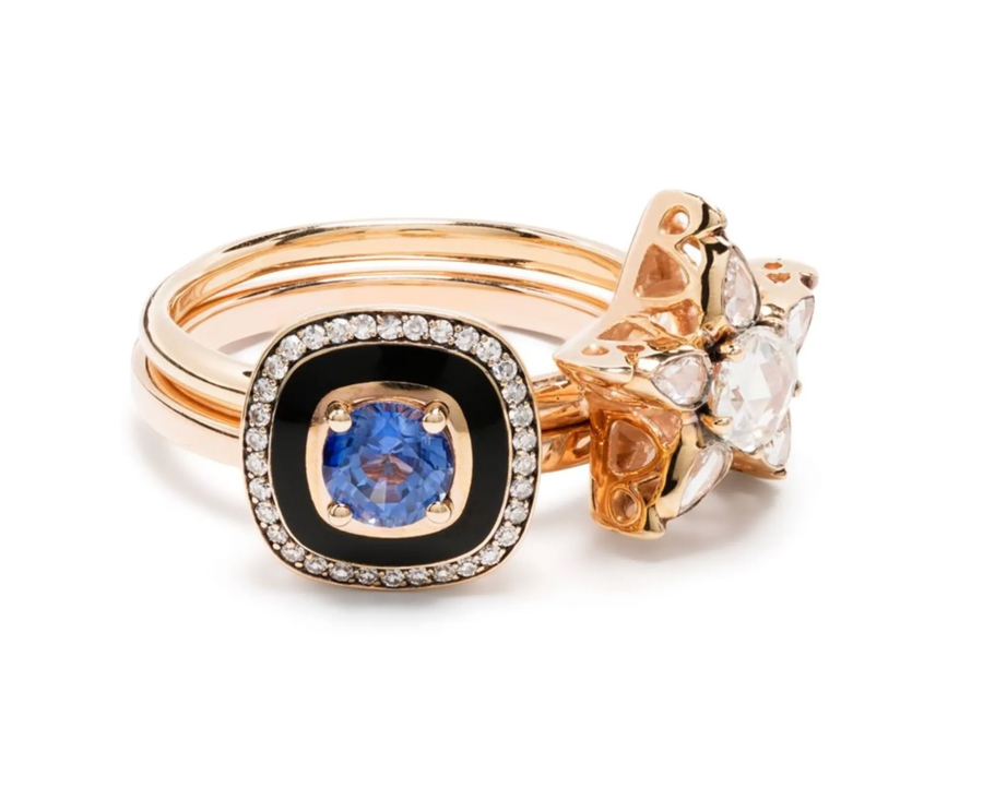 Lot de bagues Mina en or rose 18ct serties de diamant