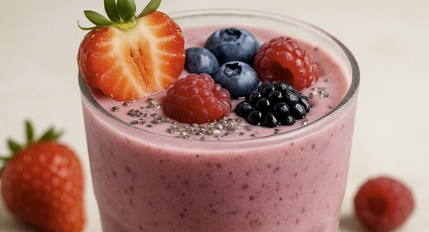 Smoothie express lait végétal + fruits rouges + graines de chia