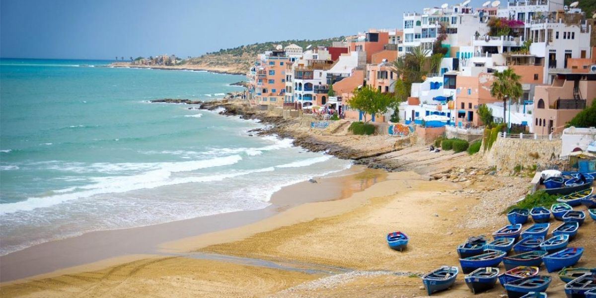 À une trentaine de kilomètres d’Agadir, Taghazout est une plage très prisée, notamment par les amateurs de surf, venus du Maroc comme d’ailleurs.