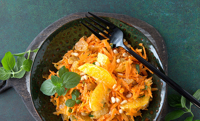 Râpez les carottes puis placez-les dans un saladier. Ajoutez le jus d’orange, le jus de citron, l’huile d’olive et la cannelle. Mélangez bien avant d’incorporer les raisins secs. Laissez reposer au frais une quinzaine de minutes avant de servir.