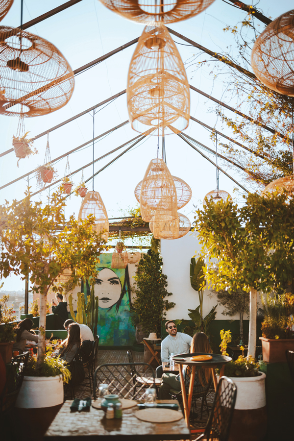 Installé dans une ancienne maison marrakchia, L’MIDA s’élève sur deux étages. Tables en marbre blanc, grandes banquettes vertes et moutardes, assises en rotin…Un univers moderne, élégant mélange d’un style traditionnel et industriel, issu de l’authenticité des matériaux et de l’artisanat marocain. Le Rooftop perché sur le toit propose un bar ouvert sur une terrasse verdoyante : Ambiance cosy, décoration aux couleurs pop et colorées… Un véritable jardin suspendu sous une structure végétale d’où se dégage une douce odeur de jasmin.