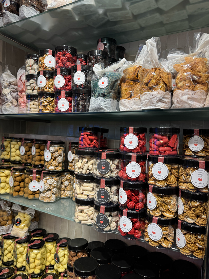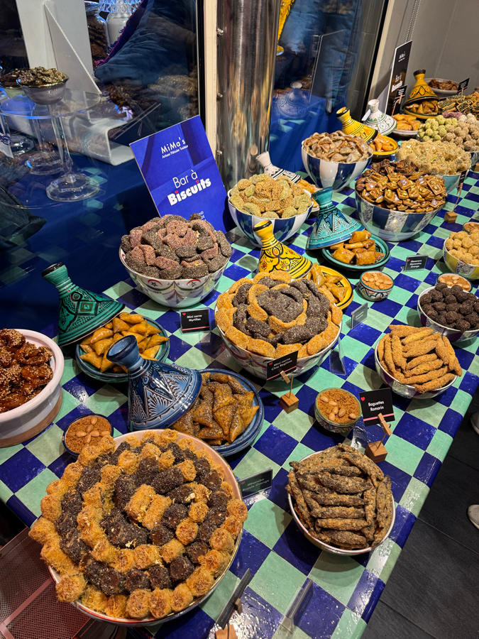 Ma signature, ce sont les miniatures. J’aime travailler sur des petits formats, proposer des bouchées élégantes qui permettent de goûter à tout. Mais cela ne m’empêche pas de respecter les tailles traditionnelles de certains incontournables comme par exemple, la “Ghriba bahla”. Quand je la revisite au café vanille je la propose en petit format, mais la recette traditionnelle, je préfère la garder dans sa taille d’origine. Elle est belle ainsi, et je ne veux pas dénaturer un classique déjà parfait. J’innove, oui, mais toujours avec beaucoup de respect pour nos traditions.