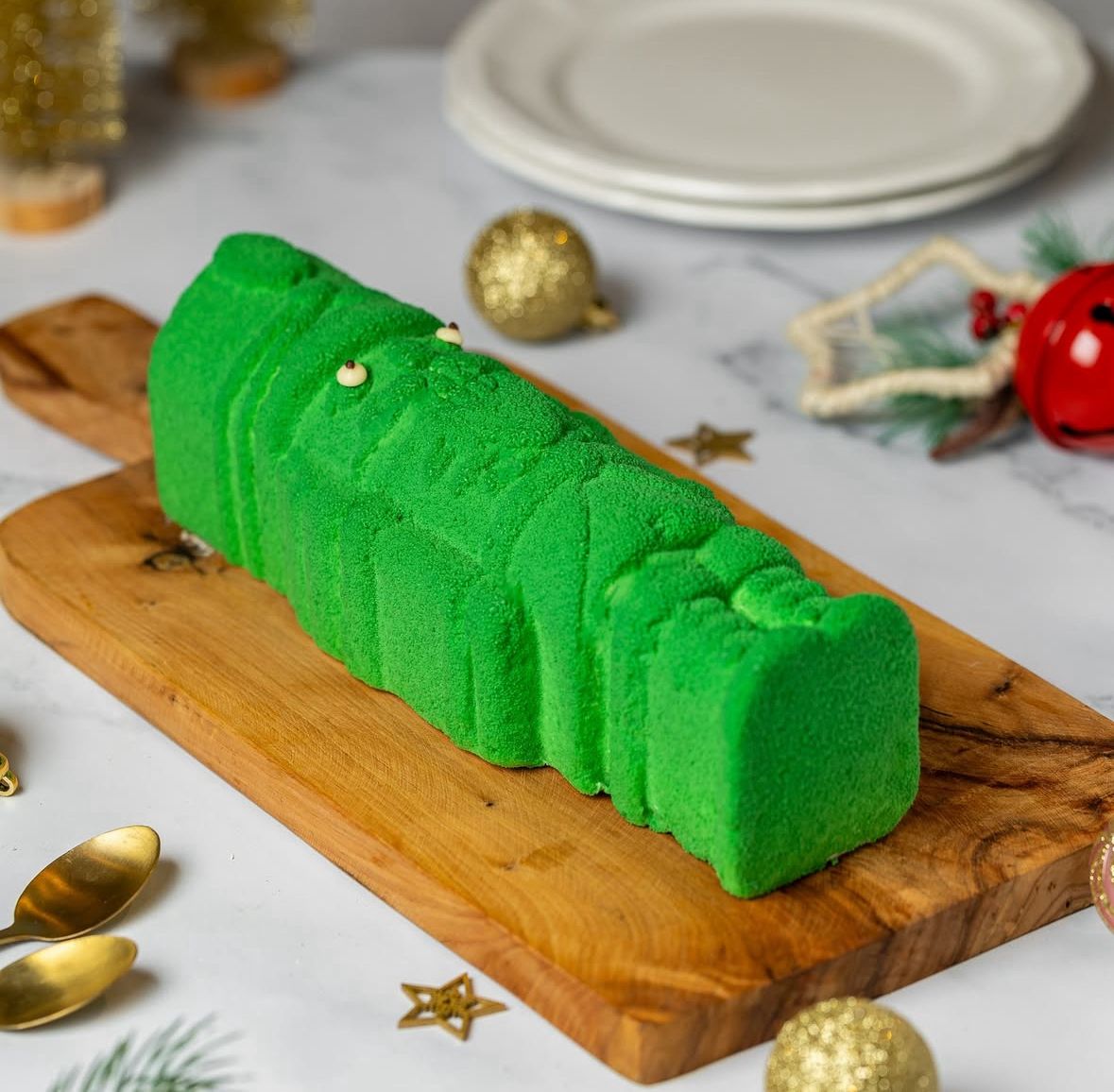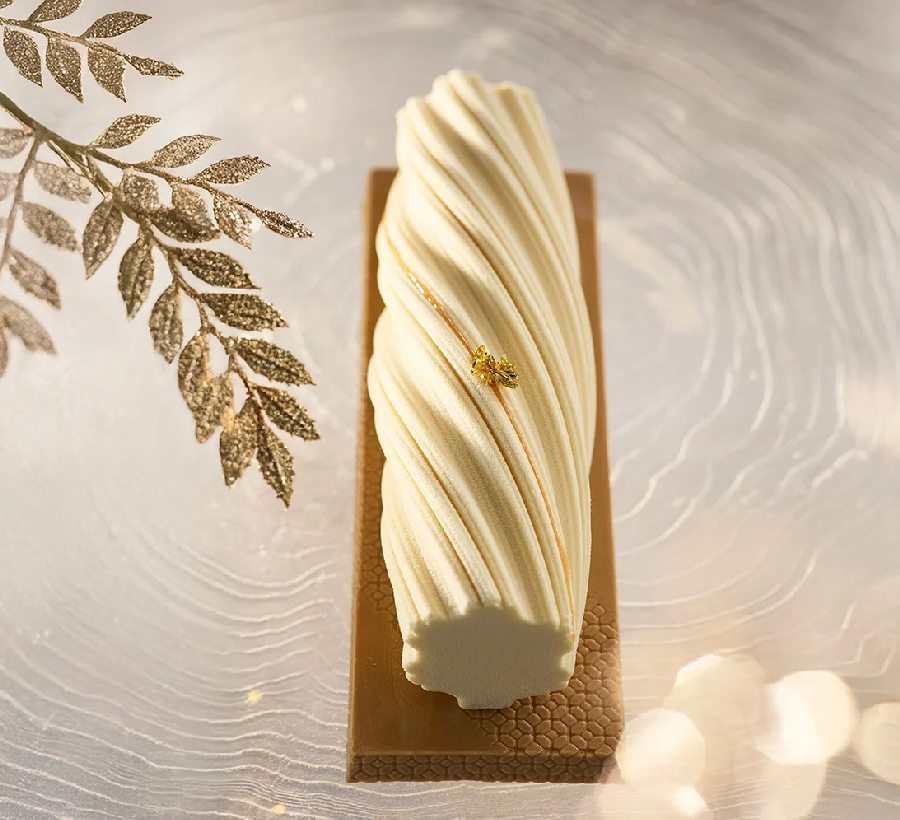 Côté saveurs, cette bûche mise sur l’équilibre : Biscuit pistache aérien, praliné croustillant, cœur açaï–cerise, zeste de citron Beldi, mousse vanille fumée et feuilles d’or pour une touche festive. Cette création contemporaine et réconfortante est pensée pour sublimer les tables de fin d’année.