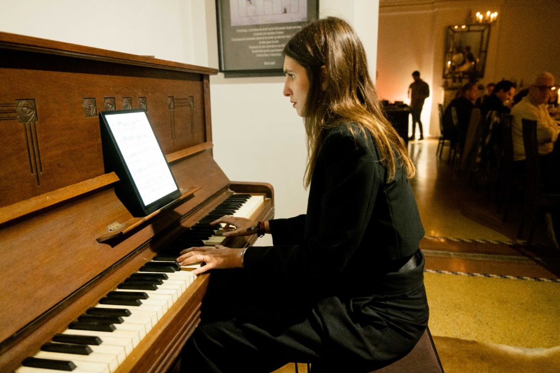 Dans un appartement art déco niché au cœur du centre-ville de Casablanca, les invités découvrent une exposition mêlant photographies et récits retraçant les parcours de cinq compositrices. Un cheminement sensible et pédagogique qui se conclut par la projection d’un clip vidéo, avant de basculer dans la seconde partie de la soirée : le dîner.