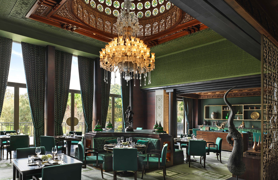 Sous une majestueuse coupole de bois sculpté, illuminée par un somptueux chandelier en cristal, le décor enchante. Zelliges géométriques, faïences venues de Chine, salons feutrés, palette chromatique déclinée dans des verts profonds et des bruns chaleureux, dessinent un univers raffiné, entre héritage marocain et touches orientales. Aux commandes, le talentueux Chef Salim Aït Ezzine imagine une carte comme un carnet de voyage : de l’épaule d’agneau au ras el hanout, plat signature du restaurant, aux mezzés du Levant, en passant par le biryani d’agneau ou la dorade masala aux saveurs de coco et curcuma. Chaque plat raconte une escale, chaque bouchée éveille les sens. Les douceurs, entre baklava à la rose et dumpling coco-yuzu, concluent le périple avec délicatesse et poésie. Avec Rihla, le Ritz-Carlton enrichit la scène culinaire rbatie d’une adresse pour les fins palais en quête de voyages sensoriels.