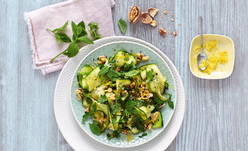 6. Salade de courgettes crues, chèvre frais et noix de pécan