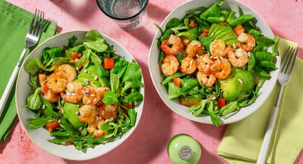 Cette salade exotique a tout pour plaire : la douceur de l’avocat, la fraîcheur de la mangue et la légèreté des crevettes. C’est un délice, avec une présentation tropicale en couches pour un effet wow. Ajoute une touche de graines pour le côté crunchy, et l’affaire est dans le sac !