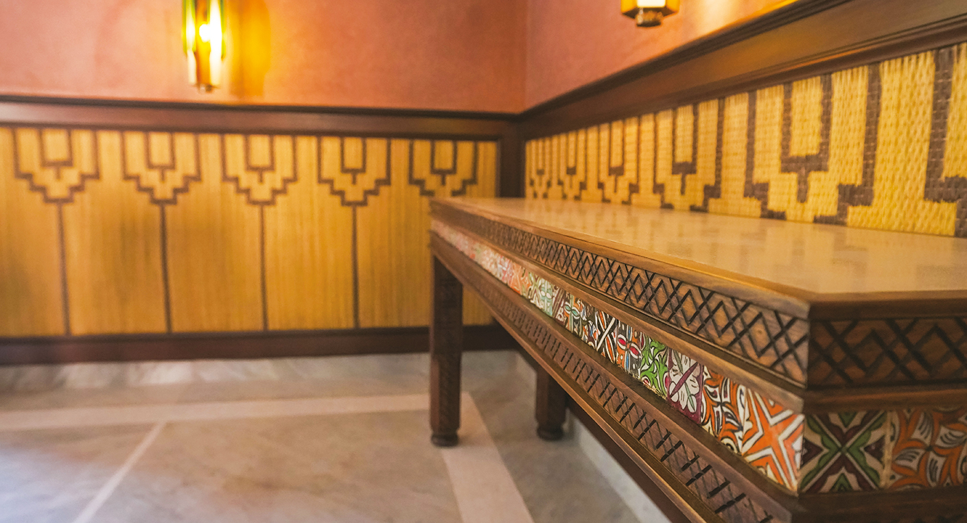 Paradoxalement, plus les intérieurs se modernisent, plus l’artisanat marocain s’impose comme le marqueur central du luxe. Mais un artisanat revisité, décomplexé, poussé à son expression la plus contemporaine. “L’artisanat n’occupe pas une place dans le luxe marocain, il est la place”, tranche Fadwa El Gharib. “Le luxe ne consiste plus à acheter un objet, mais à participer à sa création.” Zellige découpé ou sculpté, bois brûlé et re-gravé, parchemin réinventé, terre cuite transformée en revêtement mural… La main de l’artisan ne reproduit plus seulement : elle invente. Les frontières entre design, art et tradition deviennent plus poreuses que jamais. “Au Maroc, même dans les projets les plus modernes, le fait-main reste une marque de prestige. C’est ce qui nous distingue du reste du monde”, ajoute-t-elle.