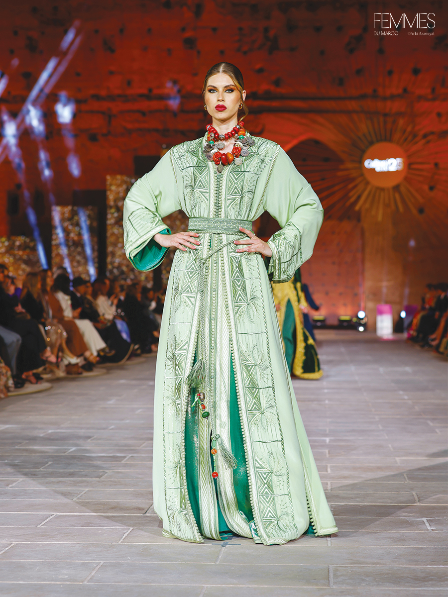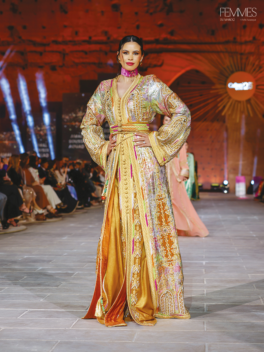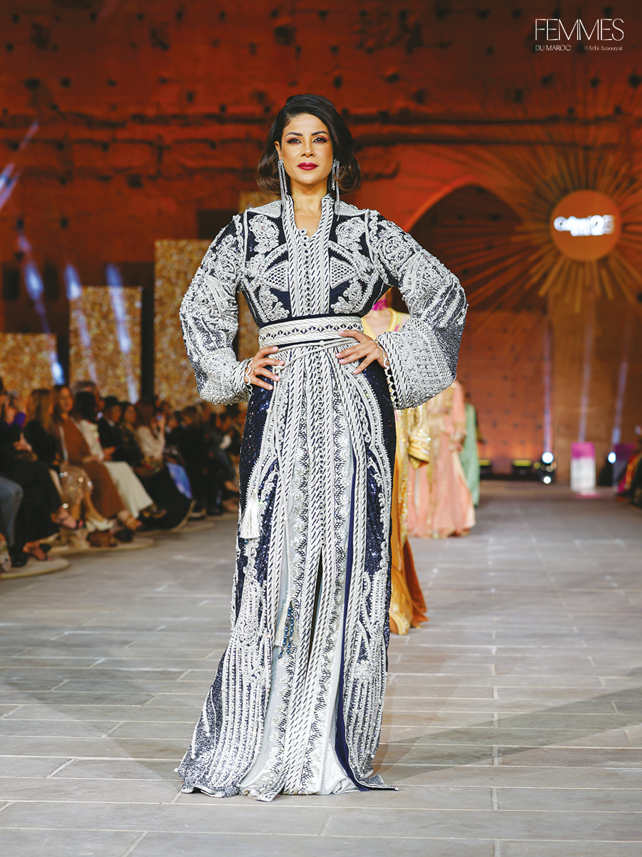 Chez Amal Soussi Aouad, le vêtement devient territoire, la broderie devient mémoire, et la silhouette devient manifeste. Chaque collection témoigne d’un sens aigu du détail, d’une exigence technique et d’un regard pointu sur l’évolution du vestiaire traditionnel. Avec la thématique autour du Sahara marocain, elle signe un hommage vibrant à une terre indomptable, qui se prolonge dans la couture comme une empreinte intemporelle – entre ligne pure, geste précis et hommage à la richesse textile du Maroc.