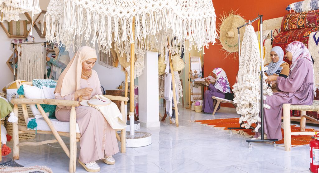 La coopérative s’inscrit dans une démarche double : sociale et écologique. En moins de cinq ans, plus de 50 femmes de la région ont été formées. Certaines avaient déjà un savoir-faire artisanal ; d’autres ont tout appris sur le tas. “Le macramé était totalement nouveau pour la plupart d’entre elles. Je leur ai tout transmis moi-même, pas à pas”, explique Khadija.