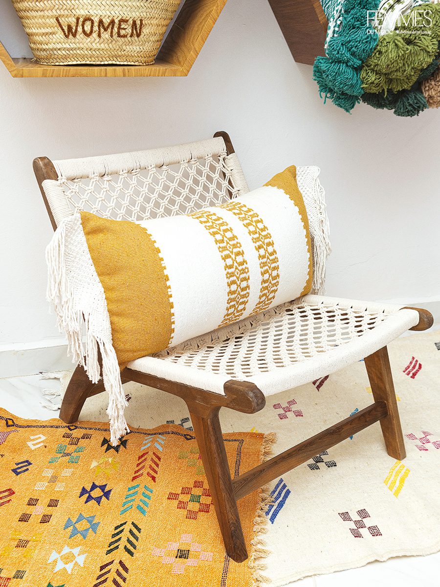 Le macramé, le crochet, ou encore la broderie deviennent alors un outil d’autonomie, mais aussi un refuge. Ghizlane, elle, s’est tournée vers cet art pour fuir l’ennui et retrouver un équilibre personnel : “J’étais femme au foyer, et je n’en pouvais plus de ne rien faire. Une voisine qui travaillait le macramé m’a initiée. Elle collaborait avec Khadija et m’a mise en contact avec elle. Mon mari refuse que je travaille à l’extérieur, donc cette activité me permet de gagner un revenu tout en respectant cette contrainte. Et en plus, c’est reposant, presque thérapeutique. Je réalise des miroirs, des coussins… Ça me fait un bien fou.”