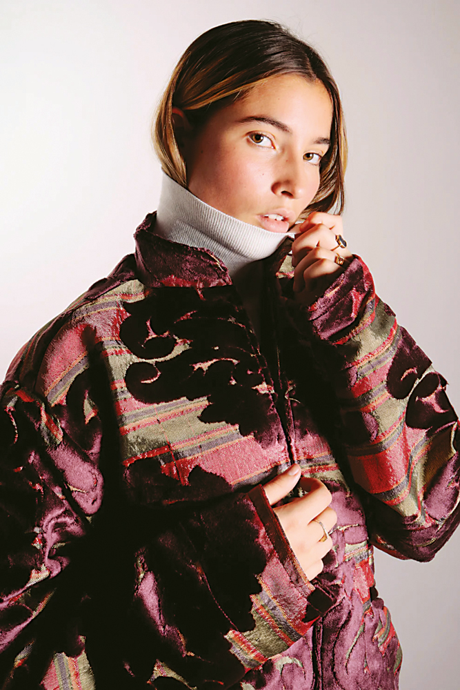 La “hoodie beldi” de Qalbi, est une pièce de choix pour un jour de match : cool, élégante, avec des broderies inspirées du patrimoine marocain et une coupe ultra-moderne. Une pièce qui en impose, tout comme la “Kenza Jacket” de la marque Zoubida fondée par Sophia Kacimi. C’est un bomber oversize cousu à la main, en jacquard vintage, avec un col mao.